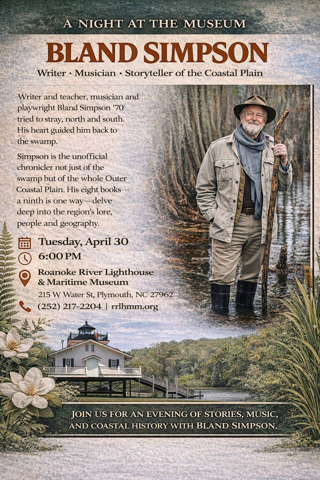 The Roanoke River Lighthouse and Maritime Museum serves a two-fold purpose: To collect, preserve, interpret and present the maritime history of the Roanoke River and Albemarle Sound, and serve as a gathering place for public and private events.